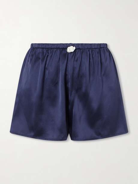 'Playa' shorts by Sara Cristina are crafted from silk charmeuse for a smooth, fluid feel and detailed with a subtle pearl accent. Designed with an elasticated waistband, they offer an easy, pull-on fit.