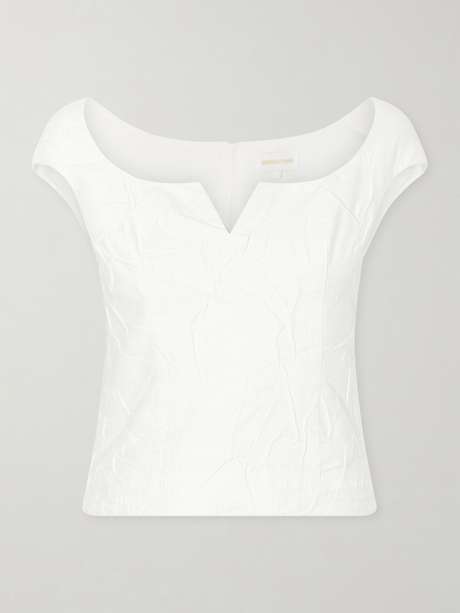 SHUSHU/TONG brings a playful, romantic sensibility to contemporary silhouettes. This top is cut from a crinkled cotton-blend that adds texture and dimension, while the close fit defines its softly structured shape. It offers a fresh, tactile take on everyday dressing.