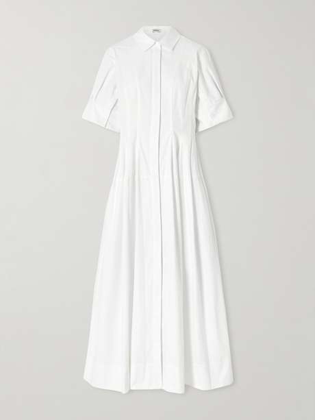 SIMKHAI Mollie pleated cotton-poplin midi shirt dress