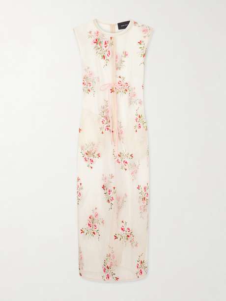 No one does modern romance quite like Simone Rocha. Crafted in Portugal from sheer organza, this dress is scattered with romantic floral embroidery and finished with a chenille bow at the waist. Style it over a white slip to show off the blooms.