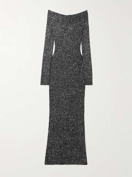 Stella McCartney's gown embodies timeless glamour. Knitted to with 52% recycled fibres with an off-the-shoulder neckline, it's drenched in tonal sequins for an iridescent shine. Wear yours with jaw-grazing earrings.