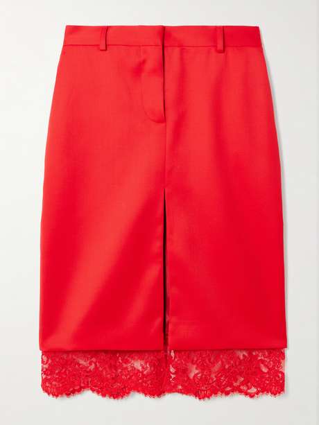 Stella McCartney's skirt debuted on the Winter '25 runway – a collection described as a "day-to-night wardrobe for the working woman". It's made from wool in a classic pencil shape and has delicate lace trims, which you can add and detach for different occasions. Wear yours with a bold lip.