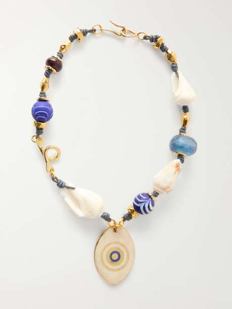 TOHUM Evil Eye gold-plated, seashell and ceramic necklace