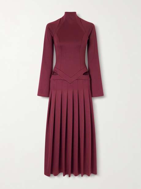 TOLU COKER Open-back cutout pleated jersey turtleneck midi dress