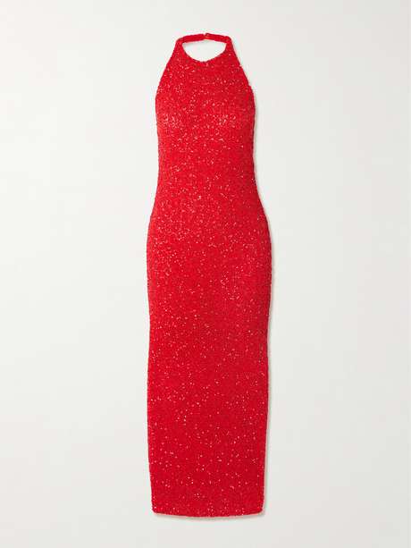 TOVE Collette sequin-embellished mesh halterneck maxi dress