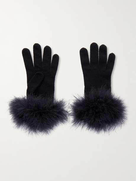 VALENTINO GARAVANI Feather-trimmed wool gloves