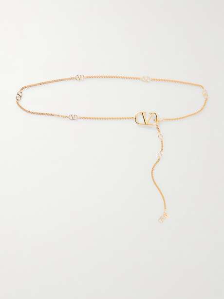 Valentino Garavani's belt is a finishing touch worth adding. Made from gold-tone metal, the dainty chain is strung with the instantly recognizable 'VLogo' and trails down the front. Wear it over blazers and dresses.