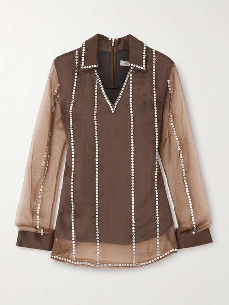 Wales Bonner's 'Presence' blouse nods to the label's sporting influences in an elevated way - the relaxed cut and open V-neck recall vintage football jerseys. It's cut from airy organza with a partial lining and detailed with silver-tone studs.