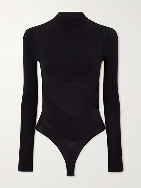 Wolford's 'Shade' bodysuit masters modern base layering. Made from opaque stretch-jersey, it's paneled in a wave-like appearance for minimal coverage and has a sultry thong reverse. Wear yours with bodycon skirts or leather pants alike.