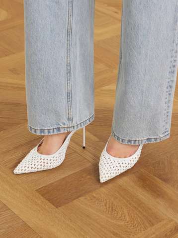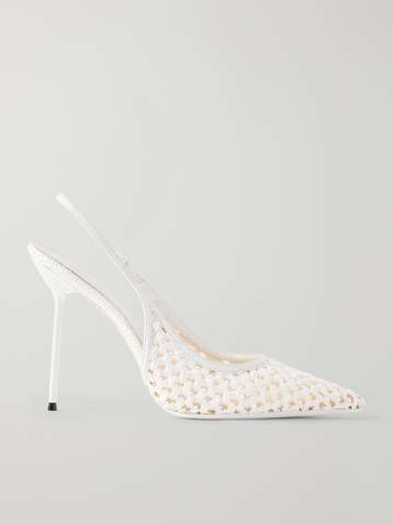 Lidia leather-trimmed straw slingback pumps