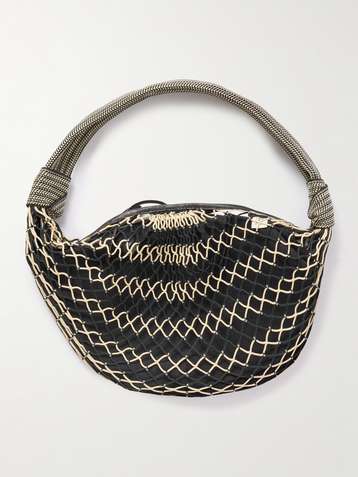 + FILT Croissant leather-trimmed fishnet shoulder bag