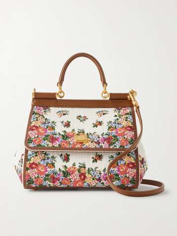 Sicily medium leather-trimmed embroidered canvas shoulder bag