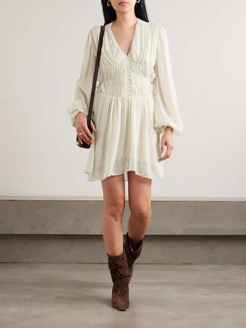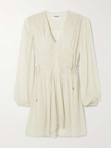 Loriena tie-detailed ruched crepe de chine mini dress