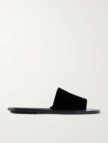 Leather-trimmed velvet slippers