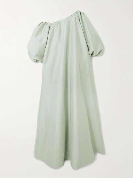 BERNADETTE's 'Nathalie' gown is the perfect embodiment of the label's whimsical charm. Made from lustrous taffeta, it falls off one shoulder and has elbow-length, puffed sleeves. It's finished with side pockets, which come in so handy for extra essentials when carrying a mini bag.