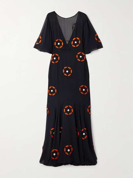 BODE's 'Zoetrope' dress is reversible, so the V-neck can be worn to the front or back. Inspired by '30s styles, it's made from silk-chiffon that's appliquéd with retro felt flowers and has floaty sleeves and a floor-skimming hem.