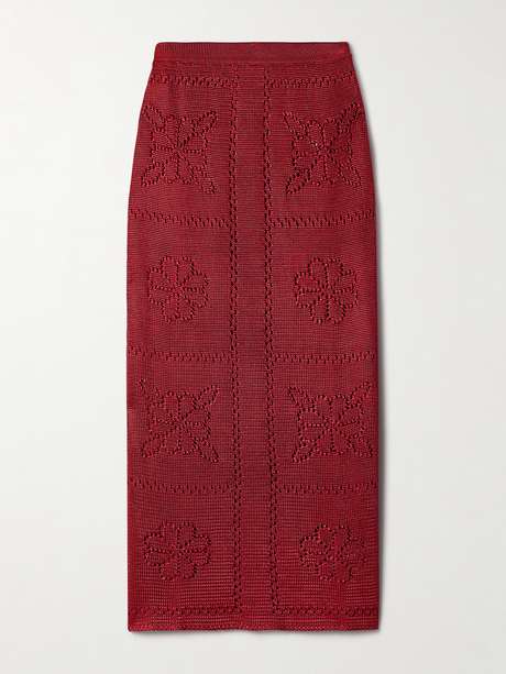 Calle Del Mar's skirt is pointelle-knitted with a delicate floral motif. Wear yours with the coordinate bralette and sandals.