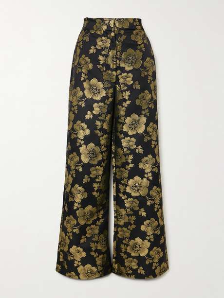 The ornate florals on DESTREE's 'Beatrice' pants are brought to life by gold threads. Made from lustrous brocade, they sit high on the waist and fall to wide legs. Try styling yours with the matching 'Eden' coat in our edit.