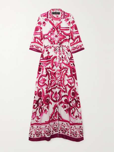 DOLCE&GABBANA Maiolica belted printed silk-twill maxi shirt dress
