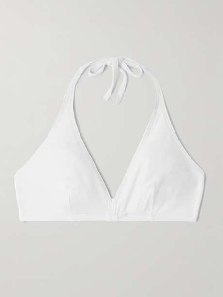 Eres' signature peau douce fabric is soft, comfortable and provides light support. This classic white 'Les Permenants Gang' bikini top has triangle cups - suitable for small to medium busts - and will never date, making it a wise investment.