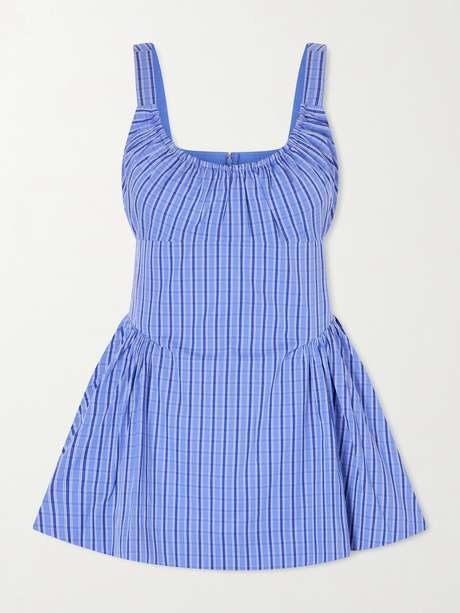 Perfectly balancing elegance and ease-of-wear, Faithfull's 'Marcella' top is defined by a pleated peplum hem that makes a beautiful contrast to wide, flowing pants. It's cut from airy cotton-poplin patterned with checks and is lightly gathered around the scooped neckline.