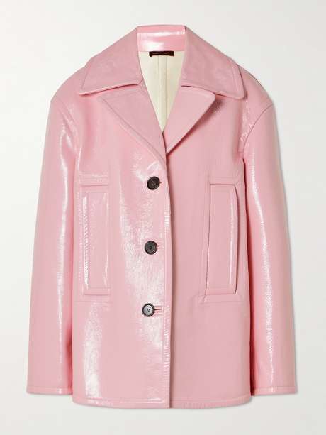 Gucci's coat is made from crinkled patent-leather that has such a beautiful sheen. It's cut for a boxy, oversized fit with an exaggerated collar and front pockets. Emulate the runway by pairing it with the matching skirt.
