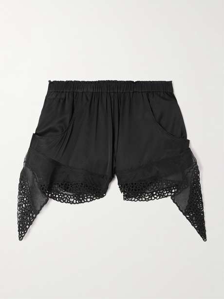 Isabel Marant's 'Ildana' shorts debuted on the Fall '25 runway, which emphasized creative craftsmanship. They're made from stretch silk-blend satin and have organza and lace trims along the asymmetric hems. The elasticated waistband ensures comfort.