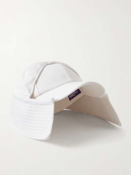Jean Paul Gaultier’s cap reimagines utilitarian headwear with a directional edge. Made from cotton-drill, it features a sun-flap design that extends coverage while lending the silhouette a distinctive, functional character.