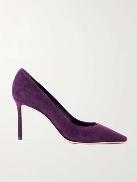 Jimmy Choo's classic 'Romy' pumps will easily transition from desk to dark. This versatile pair has been crafted in Italy from suede in a flattering point-toe silhouette. Finished with an 85mm heel and padded insole, they give you the perfect amount of lift.
