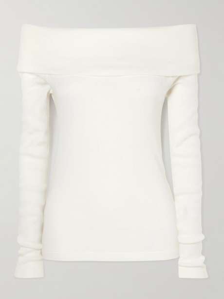 Lisa Yang pays close attention to the weight, texture and movement of its knitwear. This 'Claudina' top is made from fine 16-gauge cotton and cashmere-blend for a close fit and has a folded off-the-shoulder neckline.