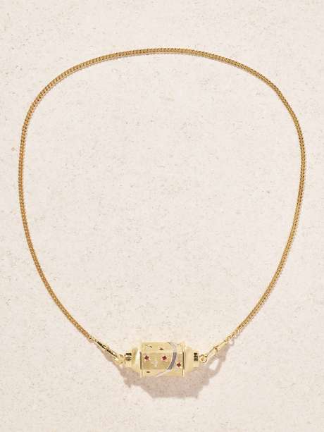 There are so many versions of Marie Lichtenberg's 'Locket' necklace that you're guaranteed to find one (or two) that you love. This 'Milky Way' one is handcrafted from 18-karat gold that's brushed for a matte finish and has sparkling diamonds and rubies. The lobster fastenings allow you to customize it to your liking by adding a few more pendants.