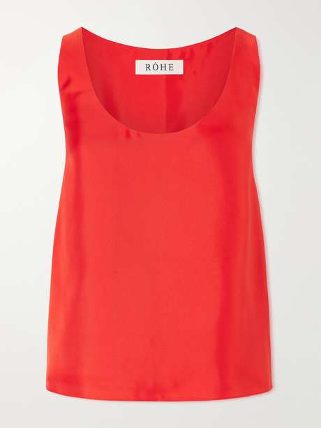 Rendered in a vibrant red hue, RÓHE’s tank captures pared-back elegance. Cut from lustrous silk-satin to drape softly along your figure, it’s topped with a wide scoop neckline that enhances the relaxed feel.