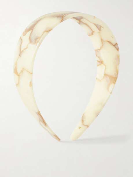 The 'Bessette' headband by Sophie Buhai is reduced to its purest form. Smooth, sculptural, and slightly irregular, it frames the face without feeling decorative.