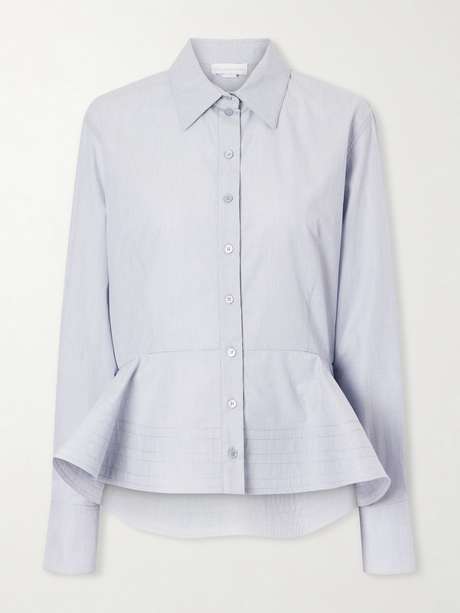 This shirt merges Stella McCartney's Spring ’26 play on proportion with a timeless appeal, so you'll return to it season after season. Made from cotton-chambray, it's tailored with a bold peplum hem and slightly dropped shoulder seams. Mirror the runway and leave a few buttons undone.