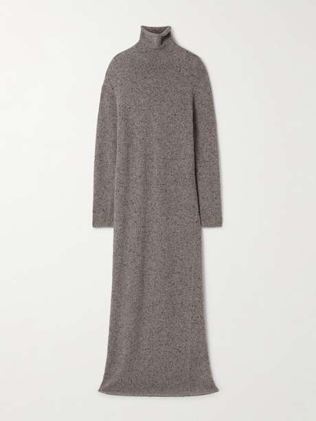 The Row’s ‘Melani’ dress translates the ease of your favorite sweater into an elegant silhouette. Knitted from speckled cashmere, it has dropped shoulders, a relaxed fit and chic turtleneck. Balance the floor-grazing hem with heeled boots.