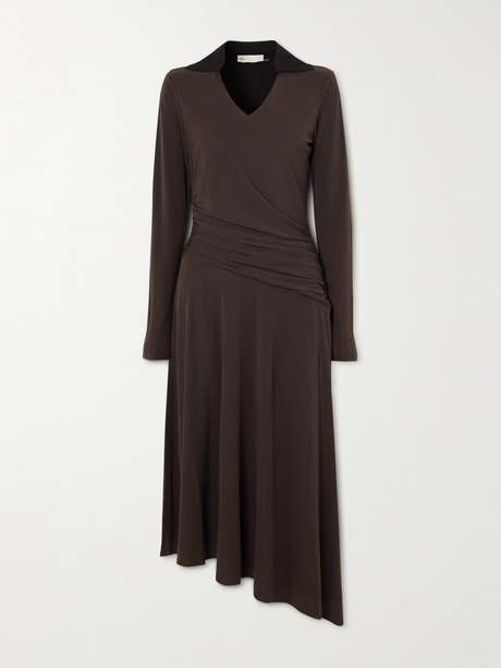 Tory Burch's dress strikes the perfect balance of elegance and ease. It's draped from slinky stretch-jersey that's gathered through the bodice. The off-tone collar lends an artful touch.