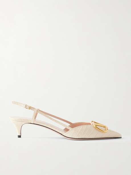 Valentino Garavani's pumps are defined by the gold-tone 'VLogo' plaque at the elegantly pointed toes. They've been made in Italy from croc-effect leather and rest on kitten heels. The slingback straps ensure a comfortable, secure fit.