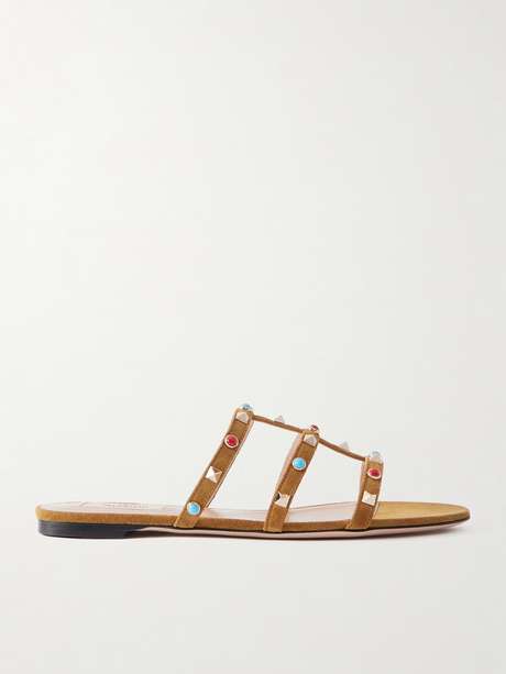 VALENTINO GARAVANI Rockstud bead-embellished suede sandals