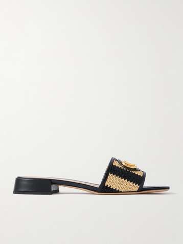 Embellished braided raffia sandals