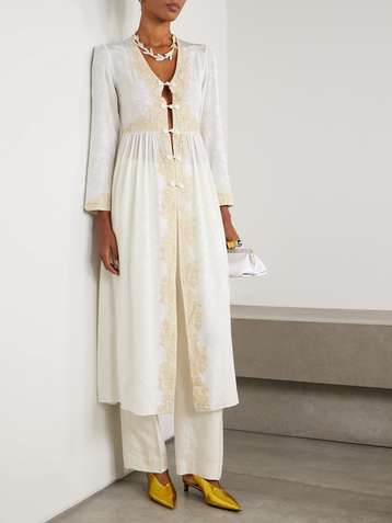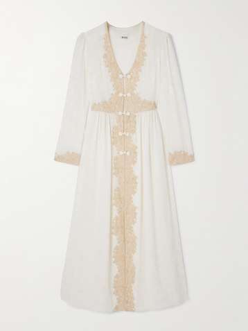 Trousseau lace-trimmed silk-jacquard maxi dress