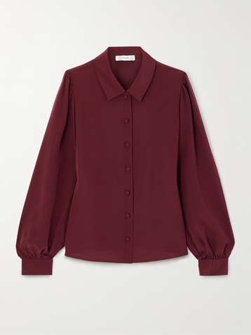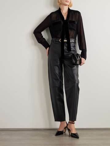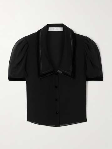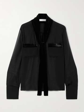 Pussy-bow velvet-trimmed silk-chiffon blouse