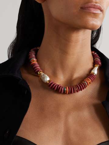 Cabana gold-plated multi-stone beaded necklace