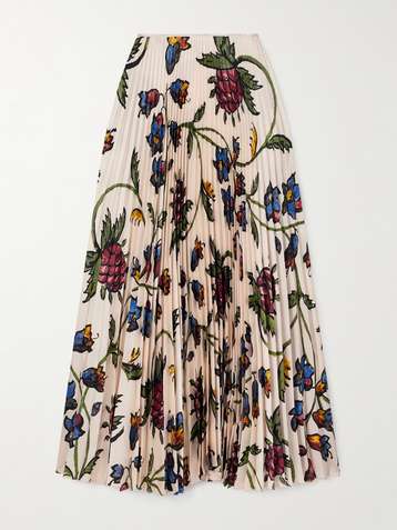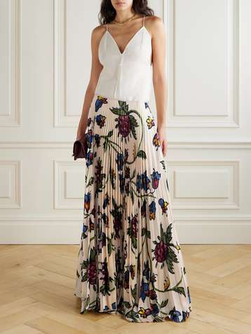 Kate pleated floral-print satin-twill maxi skirt