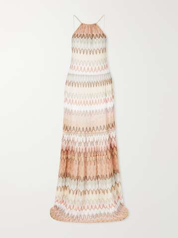 Striped metallic crochet-knit maxi dress