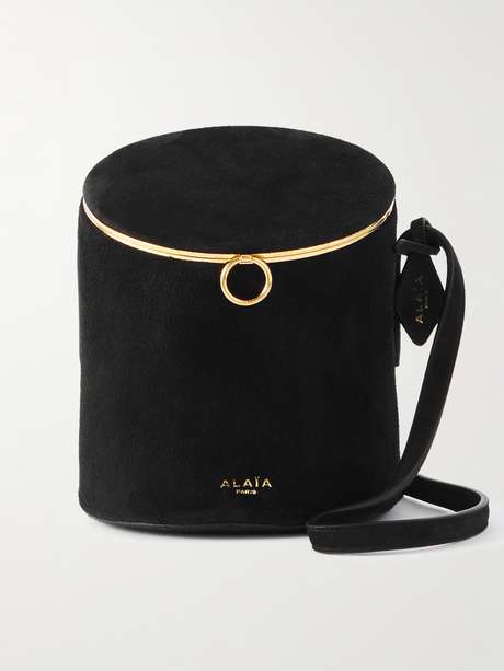 Alaïa's 'La Canette' bag has a distinctive cylindrical shape. Made from suede, it's fitted with a slim crossbody strap and has a stamped logo that matches the gold-tone hardware. Open the angled top and stow your phone, keys and a few cosmetics inside.