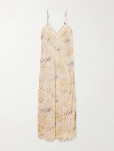 Anna Sui's 'Oasis Blooms' slip dress is designed in a silhouette that drapes softly over the body. Crafted with a crinkled texture, it moves fluidly, and delicate metallic threads woven throughout catch the light for a luminous finish.