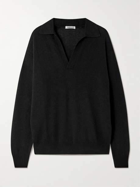 AURALEE Cashmere and silk-blend polo sweater