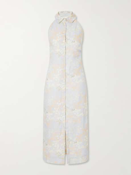 BERNADETTE Cici Jasmin floral-print linen halterneck midi dress