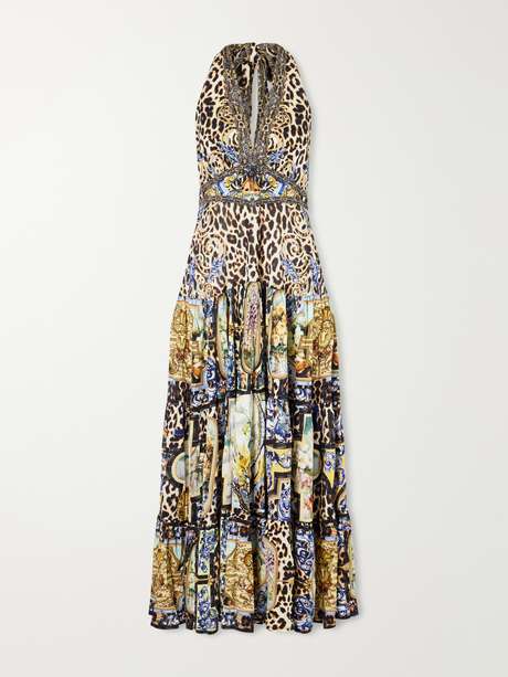 CAMILLA Tiered crystal-embellished printed jersey maxi dress