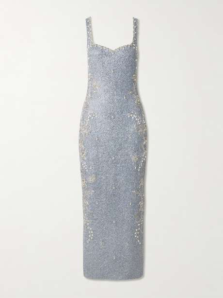 Clio Peppiatt's 'Iris' gown offers a quieter kind of glamour, with a focus on sleek lines and subtle sparkle. It's cut from stretch-mesh that skims the body and is finished with light-catching embellishments. Wear yours with minimal heels.